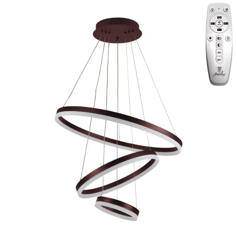 LED design závesné svietidlo s diaľkovým ovládačom RF 2,4GHz značky NEDES, je lampa vhodná do kuchyne, jedálne, spálne, chodby alebo obývačky. Tieto svietidlá vynikajúco kombinujú moderný štýl s najvyššou kvalitou. Svetlá sú ovládané SMART technológiu pomocou aplikácie NEDES Smart. LED dizajnové svietidlá pridávajú eleganciu do Vášho interiéru. Medzi kľúčové vlastnosti patrí moderný dizajn, LED technológia, úspornosť, spoľahlivosť a v neposlednom rade ich cenová dostupnosť. Umožňujú nastavenie farebných odtieňov (režimov), intenzity svetla (stmievanie) a nočného režimu. Disponuje možnosťou ovládania viacerých svietidiel jedným ovládačom. Svietidlo si pamätá posledné nastavenie po vypnutí ovládačom, ale aj posledné nastavenie pri ovládaní vypínačom, kedy musí byť svietidlo v zapnutom stave po poslednom nastavení viac ako 10sec. a aj vo vypnutom stave viac ako 10sec. Široká ponuka obsahuje najkvalitnejšie osvetlenie, ktoré je zároveň energeticky najlacnejšie. Naše svietidlá zaisťujú bezpečnú, ľahkú a bezproblémovú inštaláciu, preto sú obľúbené na celom svete.