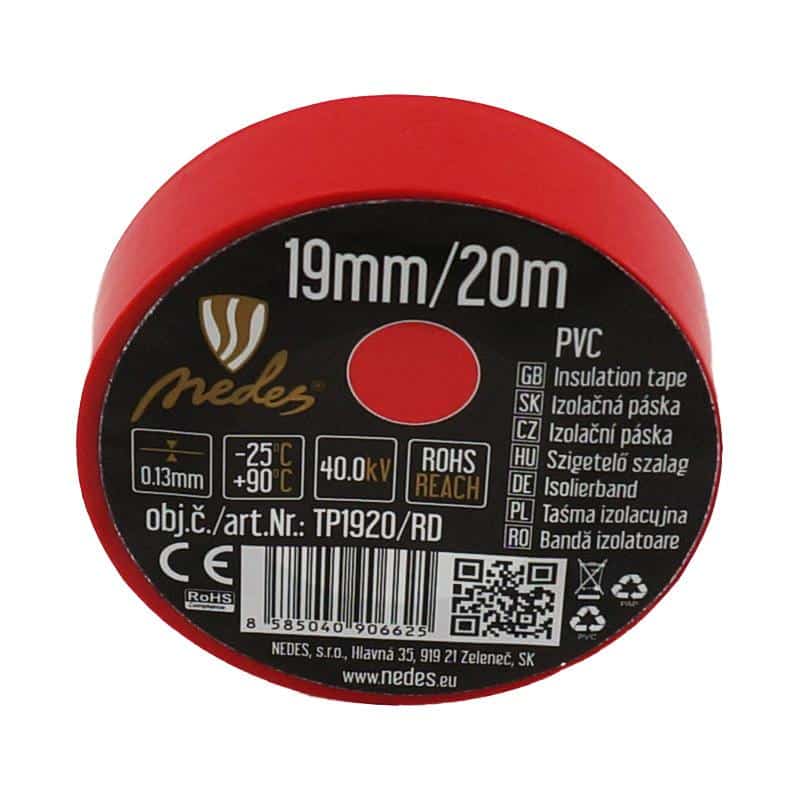 Izolačná páska PVC značky NEDES, v červenom farebnom prevedení, je praktickým a všestranným riešením pre izoláciu a označovanie v elektrických a iných aplikačných oblastaich.