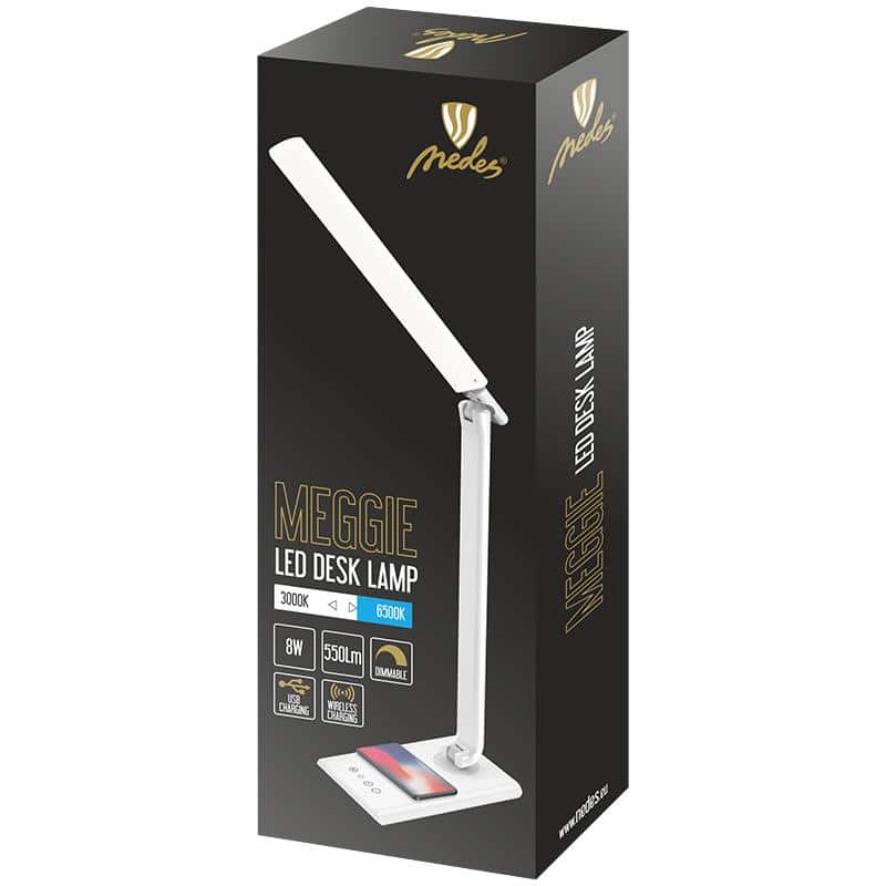 LED stolná lampa MEGGIE stmievateľná s bezdrôtovým nabíjaníma USB 8W - DL3304/W
