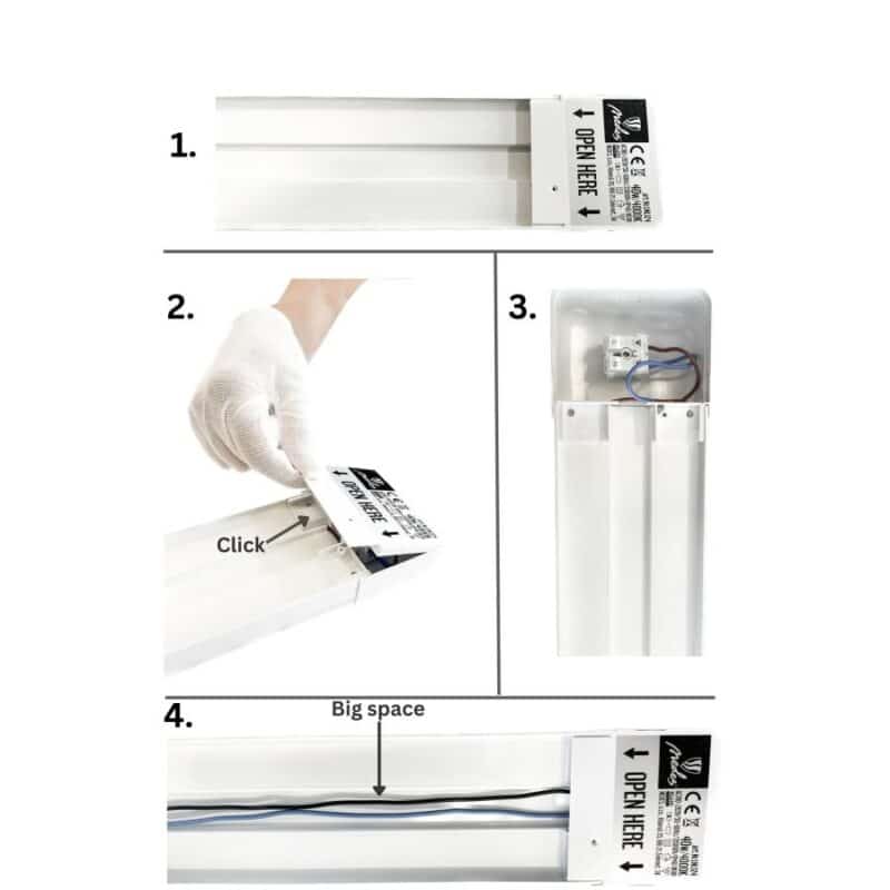 Svieti jasnou líniou v neutrálnej bielej farbe svetla.